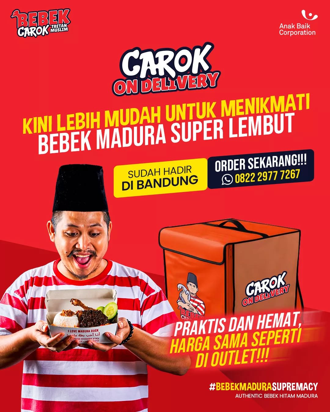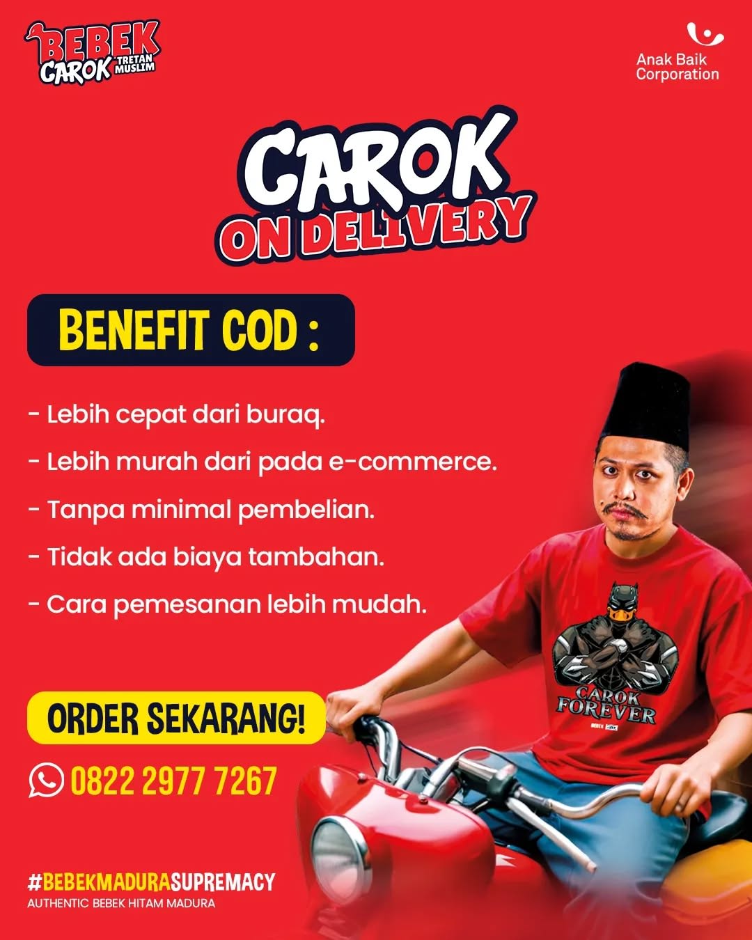 Bebek Carok Jakarta Timur adalah usaha kuliner yang diprakarsai oleh Tretan Muslim, seorang komedian dan kreator konten asal Indonesia. Terinspirasi oleh kekayaan cita rasa Nusantara, khususnya dari daerah Madura, Tretan Muslim menghadirkan Bebek Carok sebagai sebuah restoran yang mengedepankan hidangan bebek dengan bumbu tradisional dan rempah-rempah autentik.